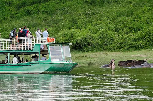 At Kazinga channel(which connects lake Edward and lake George) also we find a variety of birds and animals including hippos bathing.This is also a great trip to see elephants, buffaloes, water buck, Uganda kob, giant forest.